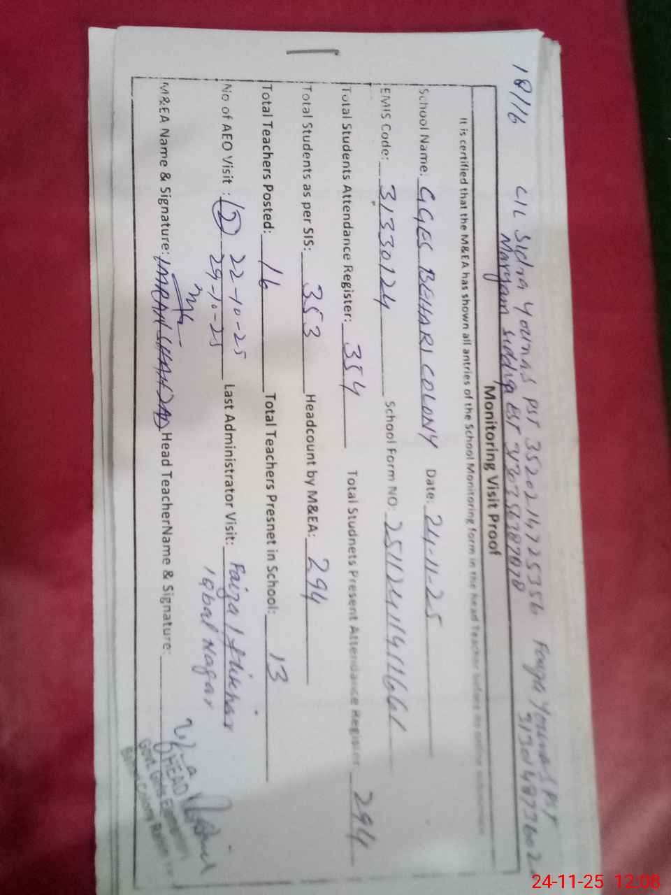 | EMIS Code: 31330124 | Name of School: GGES BEHARI COLONY | |||