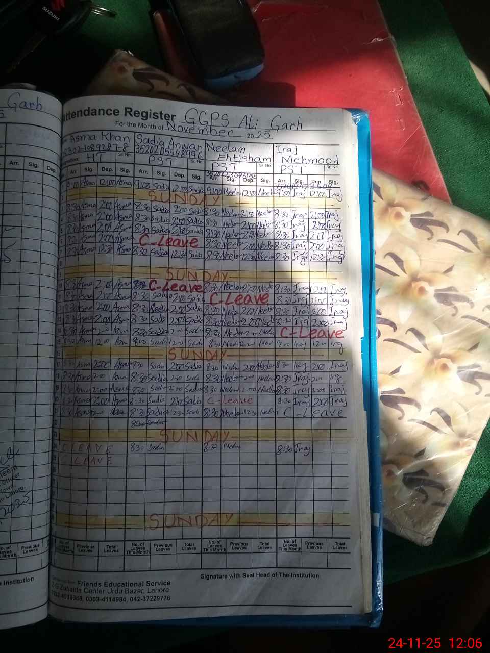 | Name: AS**** KH**** Designation: (School Headmaster's/Headmistress's) Head Mistress Phone/Cell Number: 03**** |