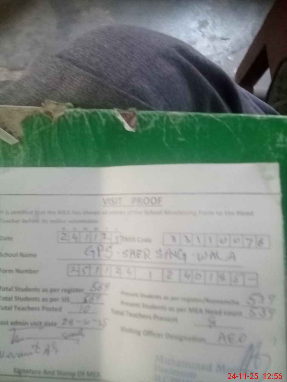 | EMIS Code: 33110076 | Name of School: GPS MC SHER SINGH WALLA FSD | |||