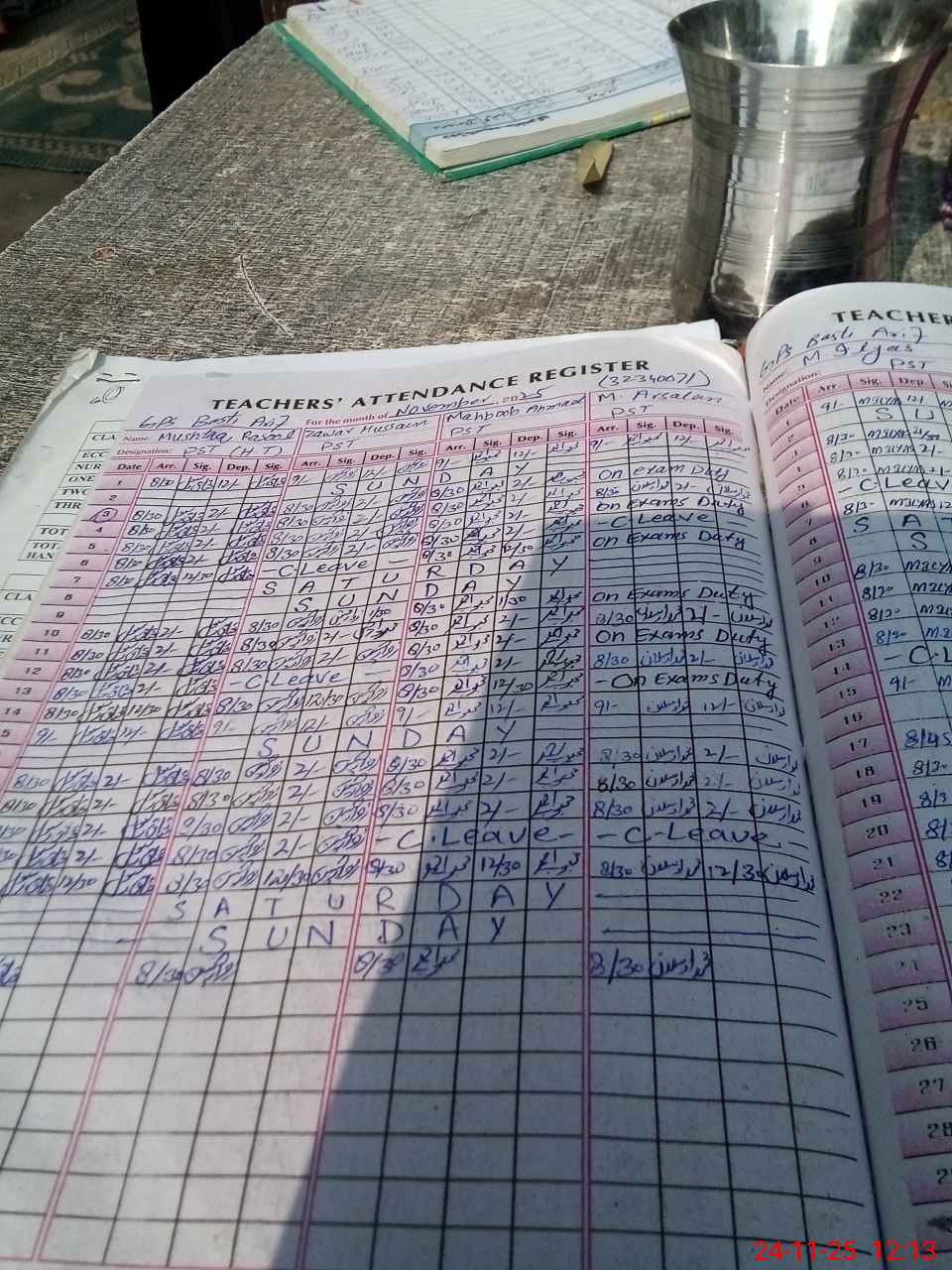| CNIC | Full Name | Designation | R/C | Absence During Last Calender Month |