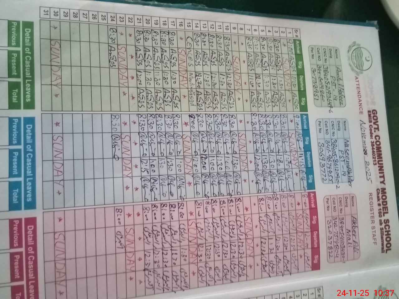 | Name: AM**** HA**** Designation: (School Headmaster's/Headmistress's) PST Phone/Cell Number: 03**** |