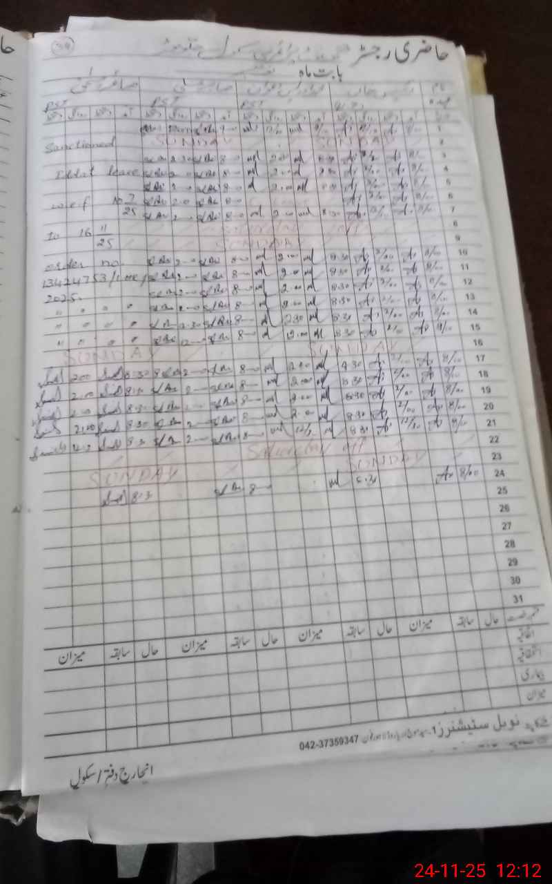 | CNIC | Full Name | Designation | R/C | Absence During Last Calender Month |