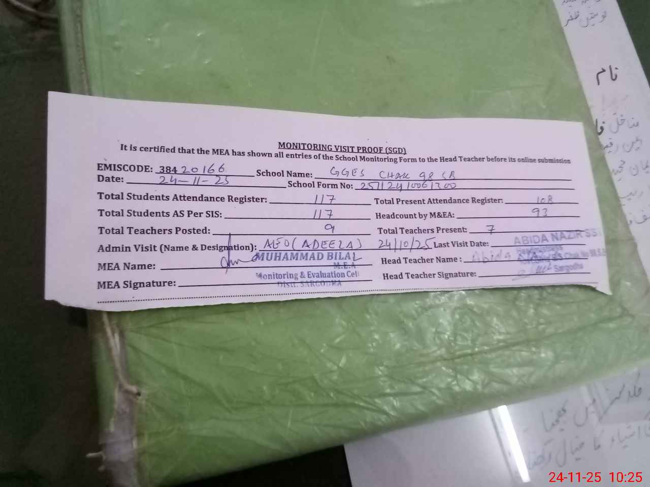 | EMIS Code: 38420166 | Name of School: GGES CHAK NO.98 SB | |||