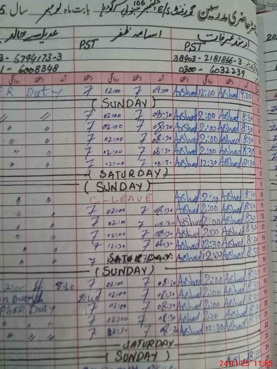 | CNIC | Full Name | Designation | R/C | Absence During Last Calender Month |