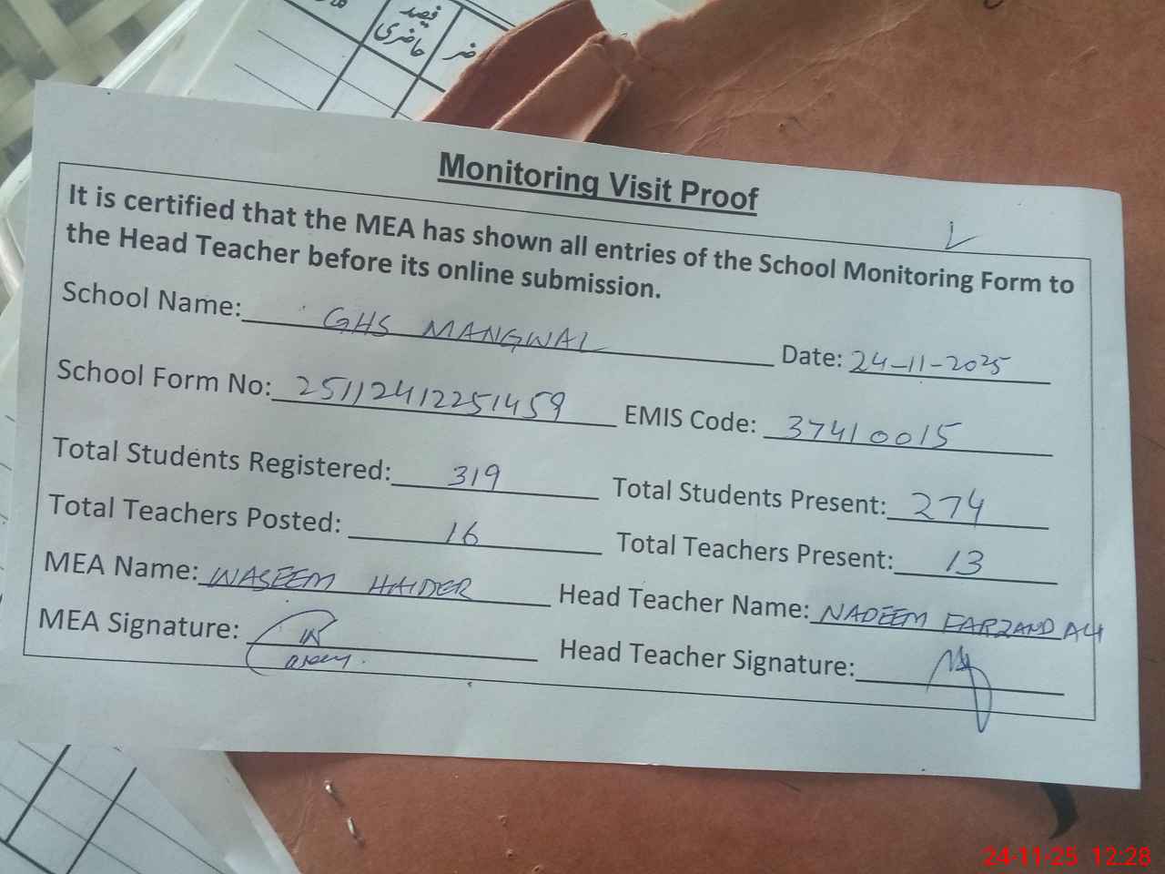 | EMIS Code: 37410015 | Name of School: GHS MANGWAL | |||