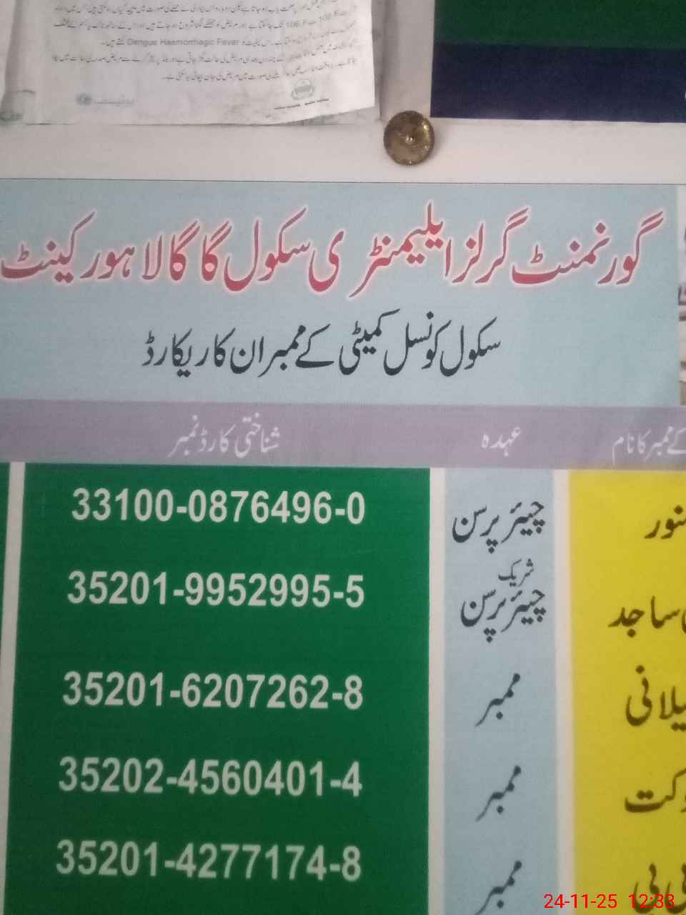 | District: LAHORE | Tehsil: CANTT | Markaz: HADIARA-FEMALE | Level: Middle | |