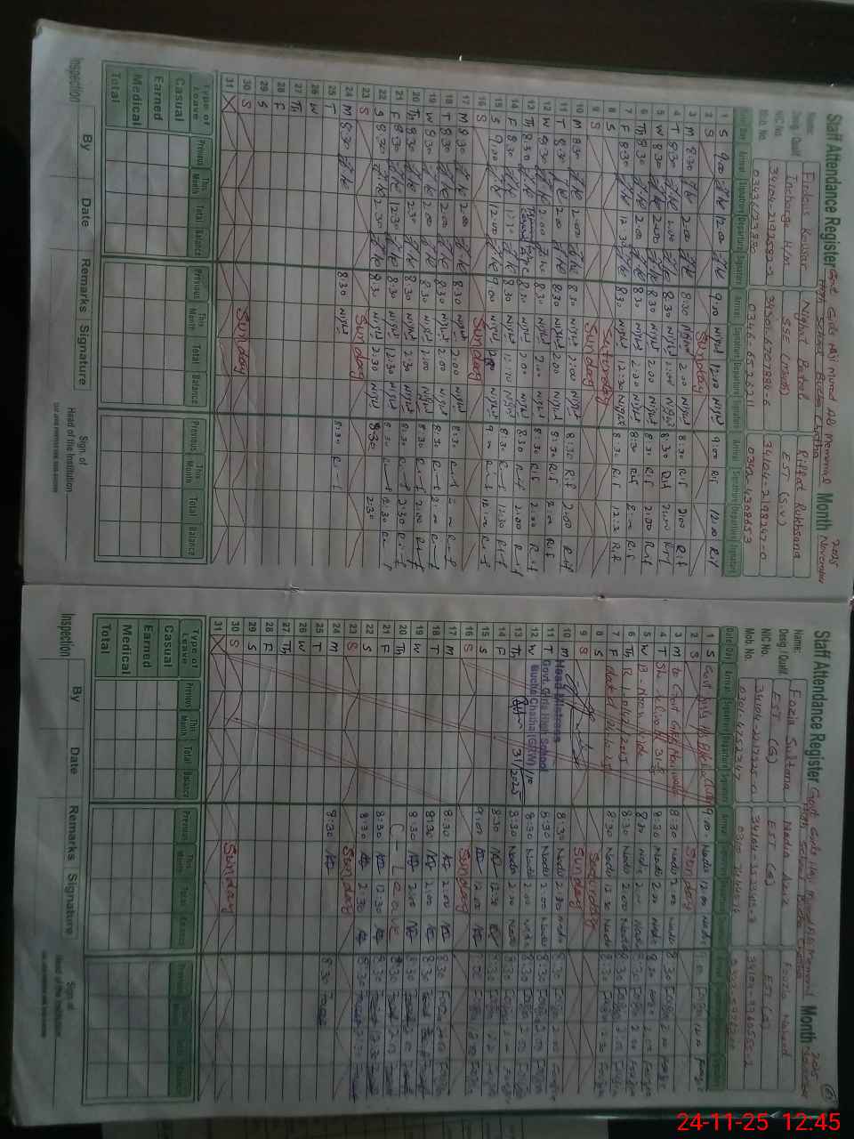 | CNIC | Full Name | Designation | R/C | Absence During Last Calender Month |