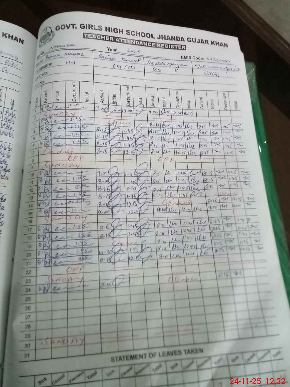 | EMIS Code: 37360044 | Name of School: GGHS JHANDA GUJAR KHAN | |||