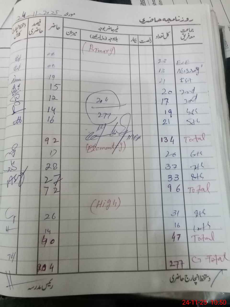 | Total Students Present | 0 | 8 | 19 | 15 | 12 | 14 | 16 | 17 | 28 | 27 | 26 | 14 | 204 | |||