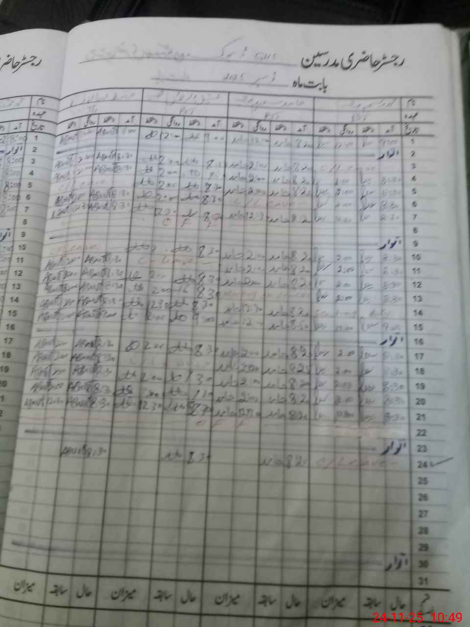 | CNIC | Full Name | Designation | R/C | Absence During Last Calender Month |