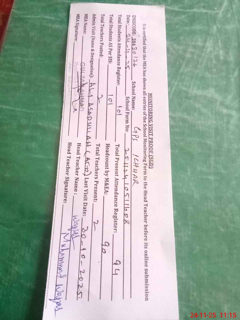 | EMIS Code: 38430126 | Name of School: GPS ICHHAR | |||