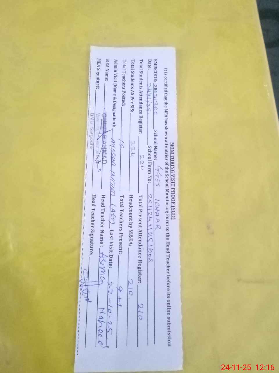 | EMIS Code: 38430360 | Name of School: GGES ICHHAR | |||