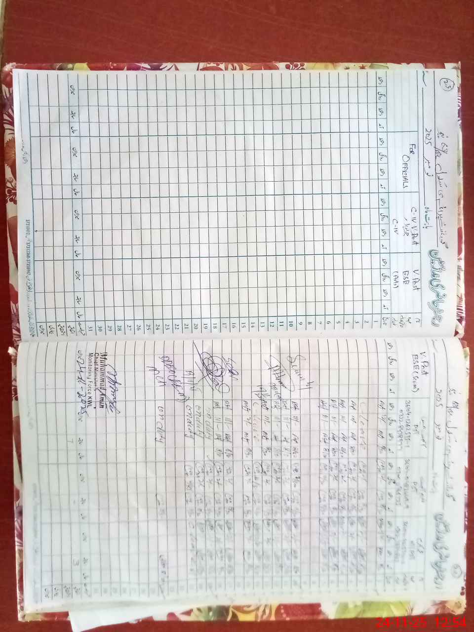 | CNIC | Full Name | Designation | R/C | Absence during last cal. month |