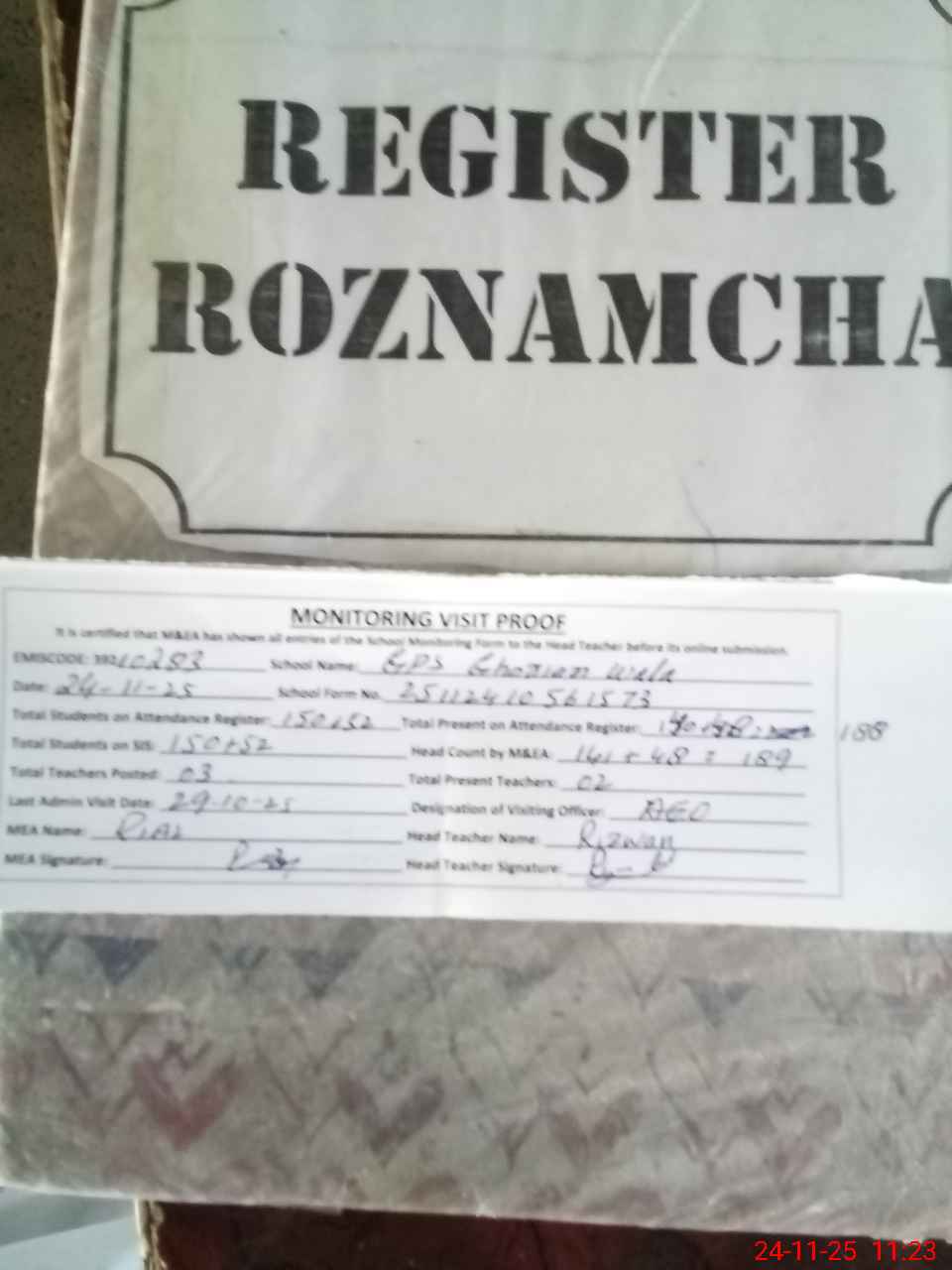 | EMIS Code: 39210283 | Name of School: GPS GHORIAN WALA | |||