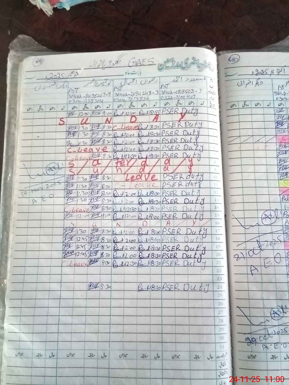 | Leave | Duty | Absent | Maternity | Medical | Ex- Pak |