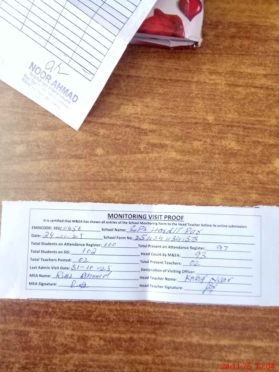 | EMIS Code: 39210456 | Name of School: GPS HARDIT PUR | |||