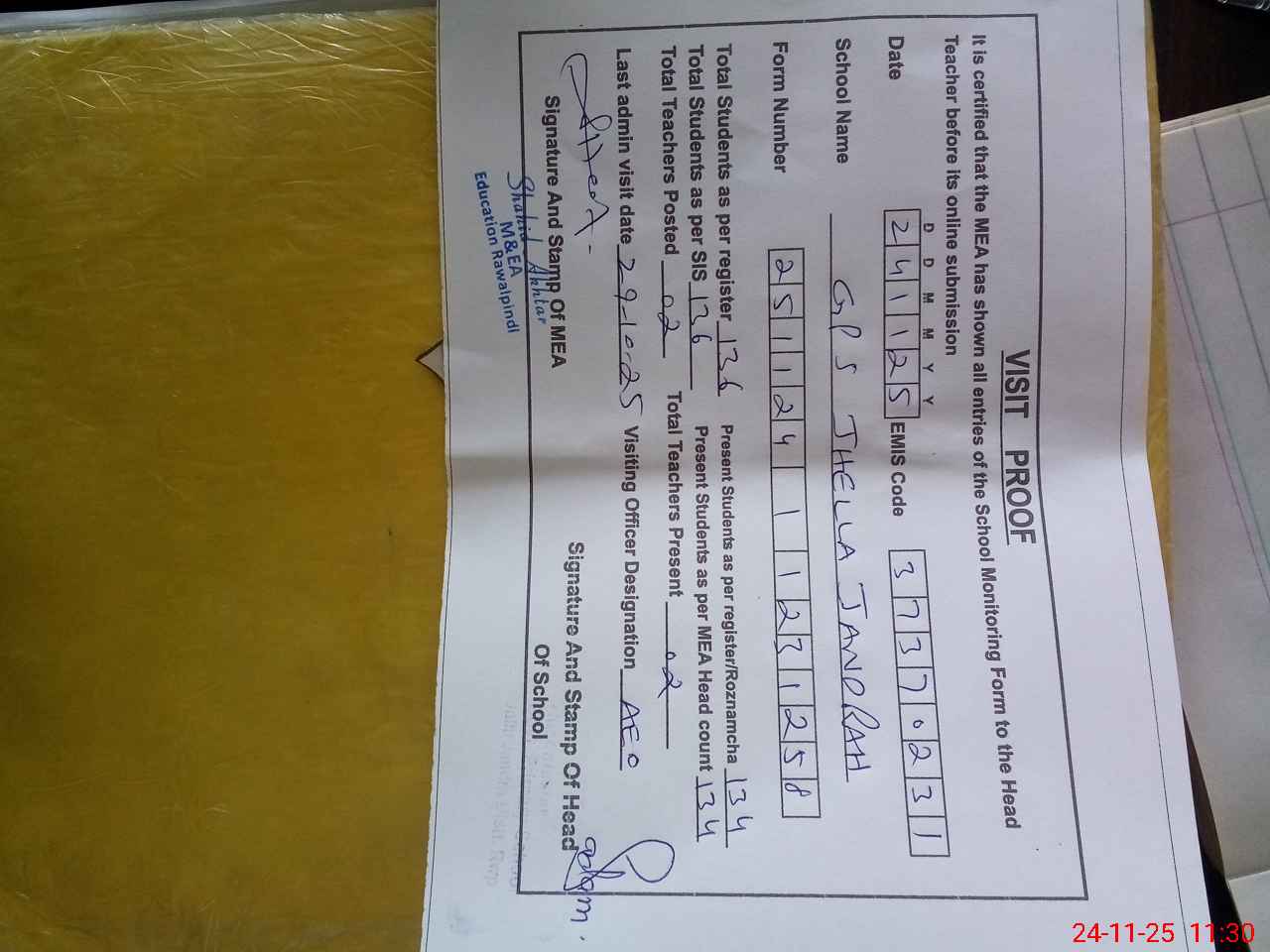 | EMIS Code: 37370231 | Name of School: GPS JHELLA JANDRAH | |||