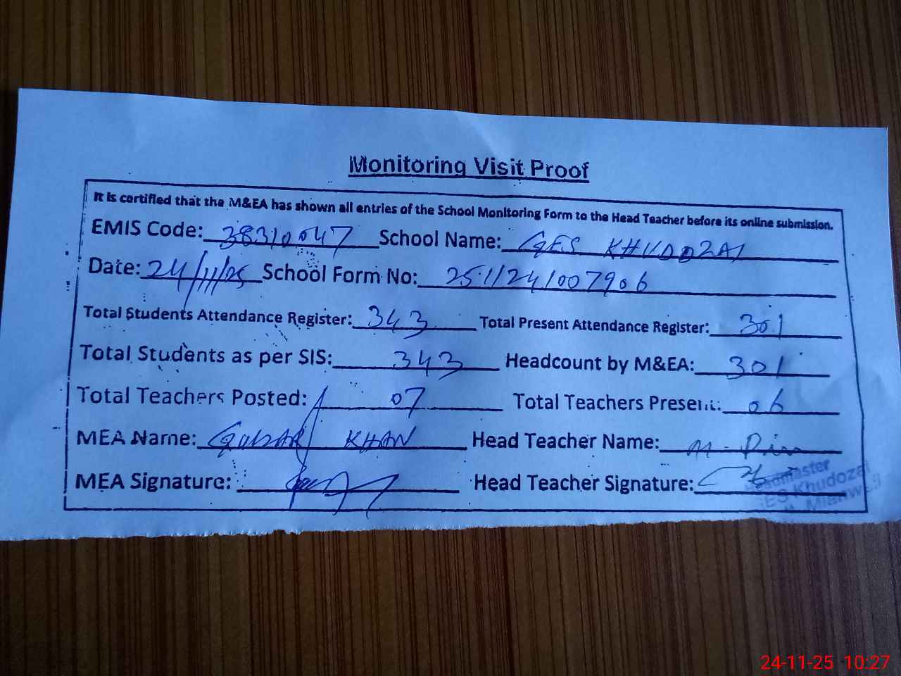| EMIS Code: 38310047 | Name of School: GES KHUDOZAI | |||