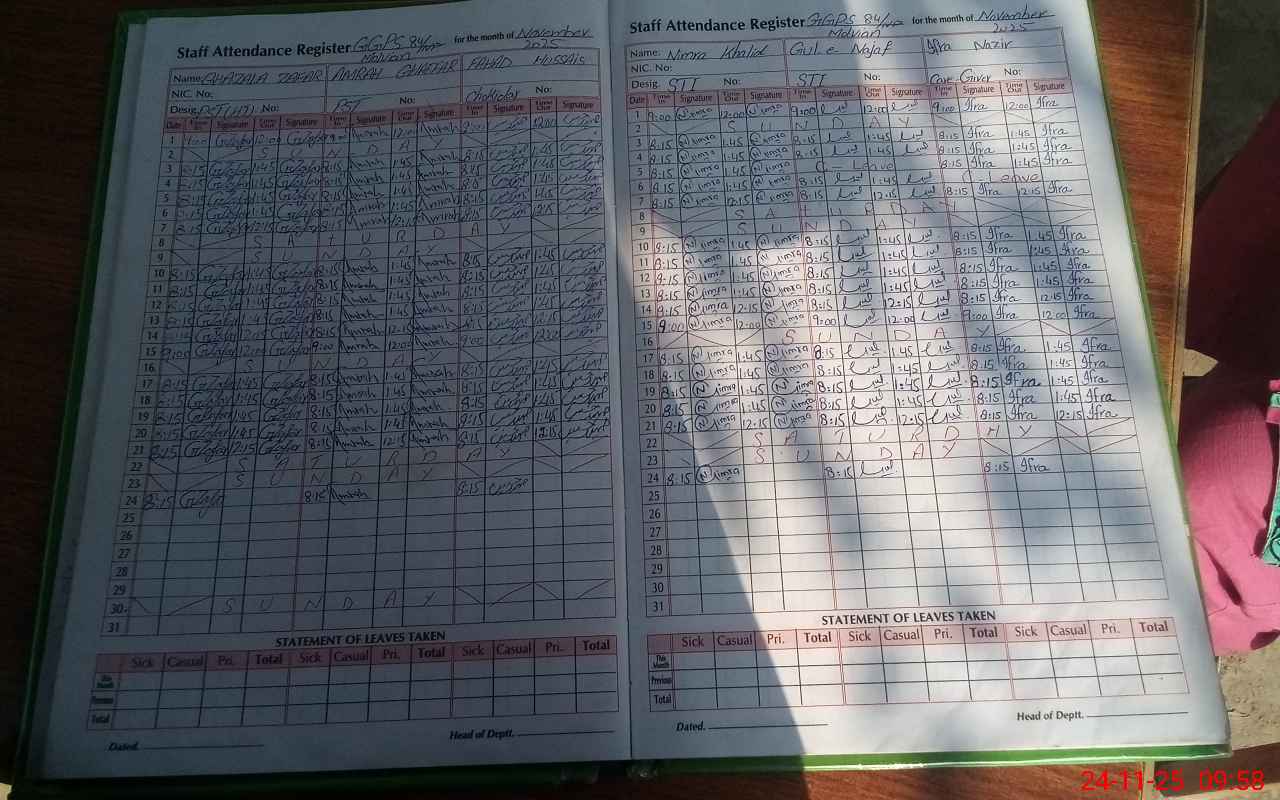 | CNIC | Full Name | Designation | R/C | Absence During Last Calender Month |