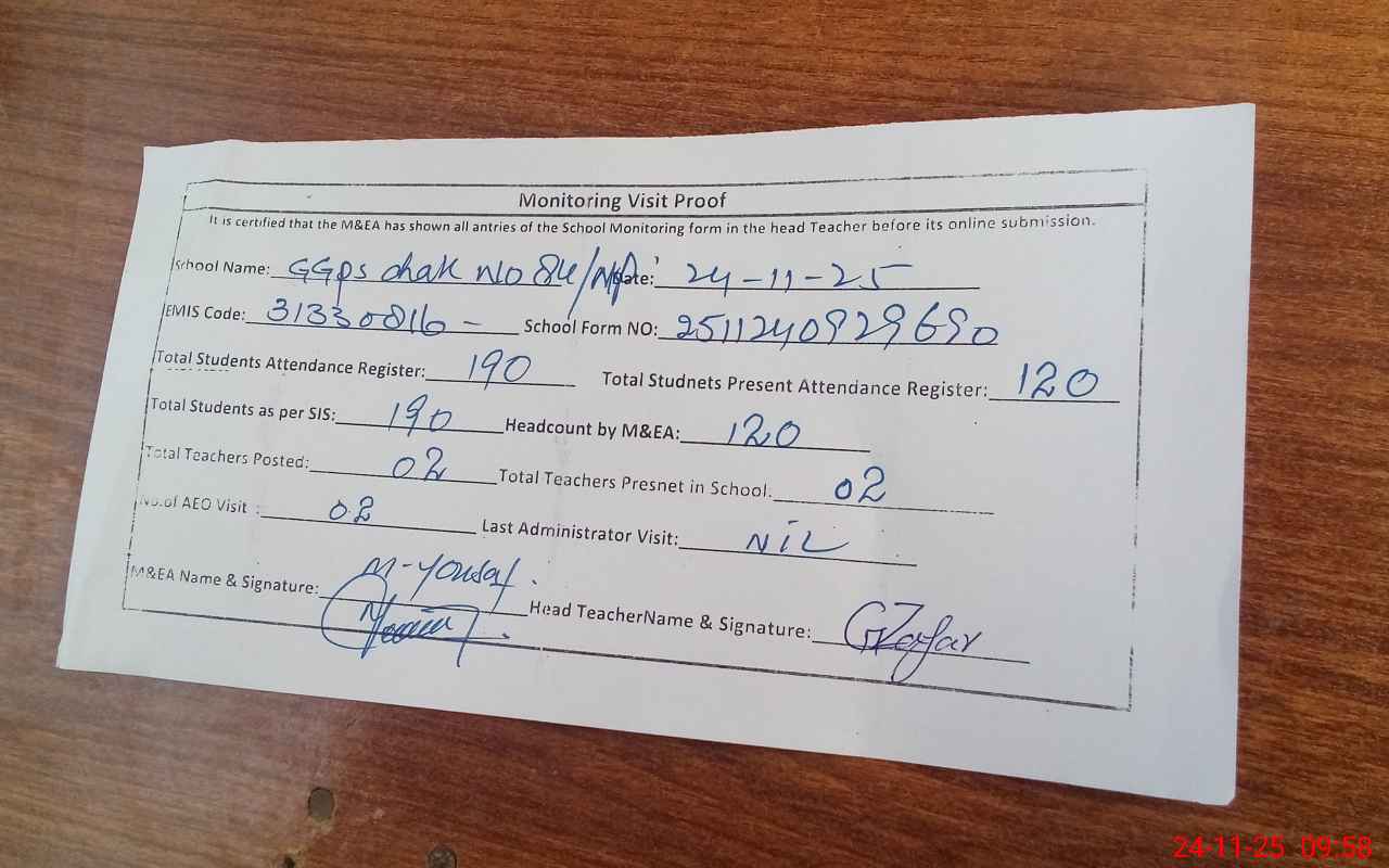 | EMIS Code: 31330816 | Name of School: GGPS CHAK 84/NP MOLVIAN | |||