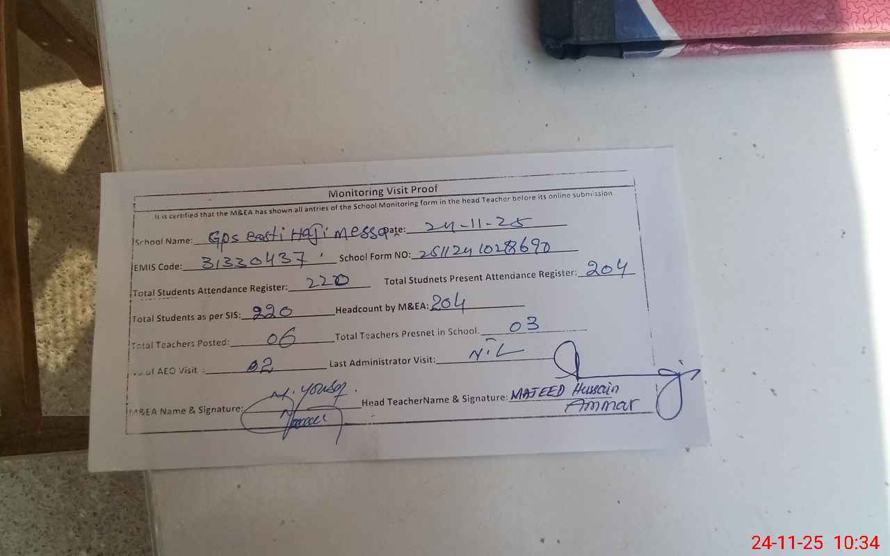 | EMIS Code: 31330437 | Name of School: GPS BASTI HAJI M. ESSA | |||