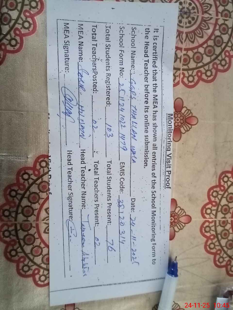 | EMIS Code: 38120314 | Name of School: GGPS THALLAN WALA | |||