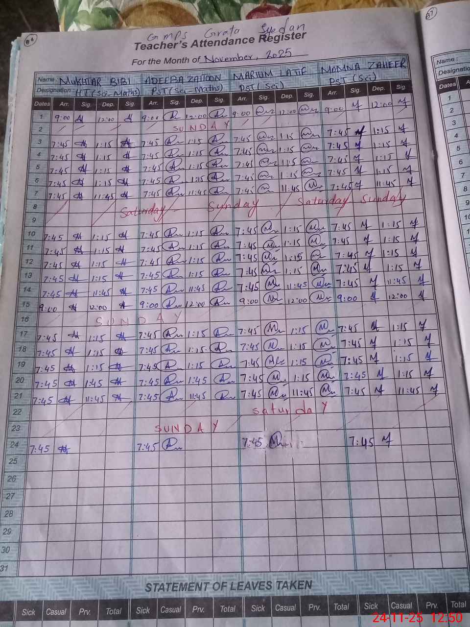 | Leave | Duty | Absent | Maternity | Medical | Ex- Pak |