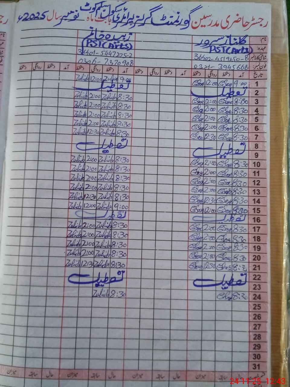 | Name: Na**** As**** Designation: (School Headmaster's/Headmistress's) PST Phone/Cell Number: 03**** |