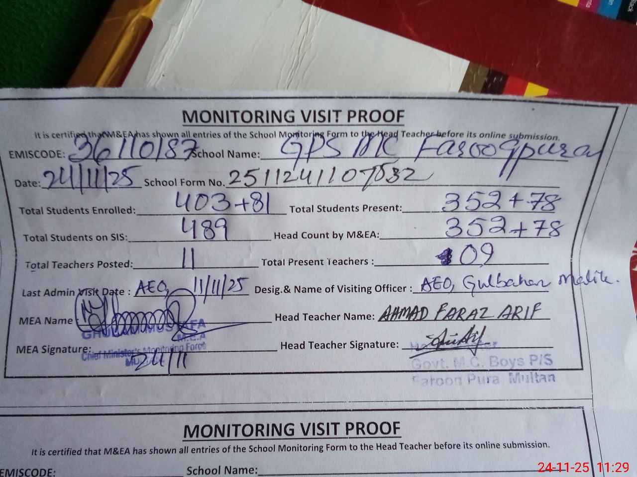 | EMIS Code: 36110187 | Name of School: GPS MC FAROOQ PURA MULTAN | |||