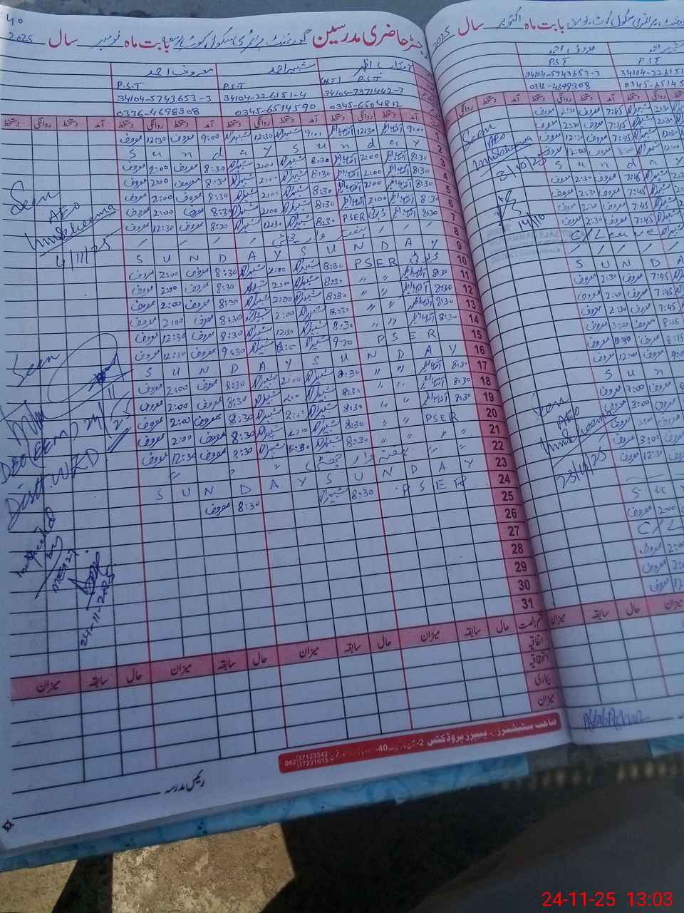 | Name: AF**** AZ**** Designation: (School Headmaster's/Headmistress's) PST Phone/Cell Number: 03**** |