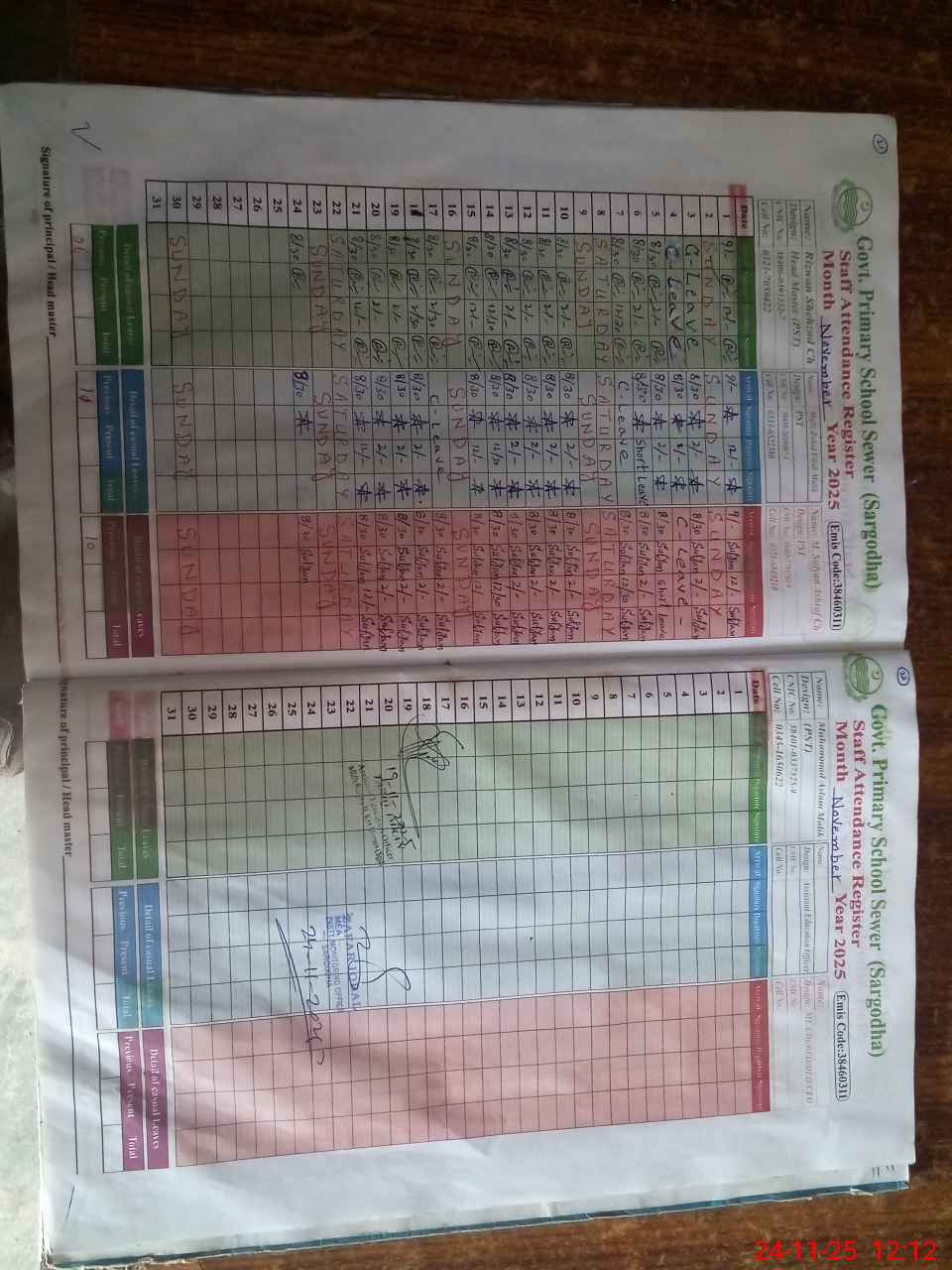 | Name: RI**** SH**** Designation: (School Headmaster's/Headmistress's) PST Phone/Cell Number: 03**** |