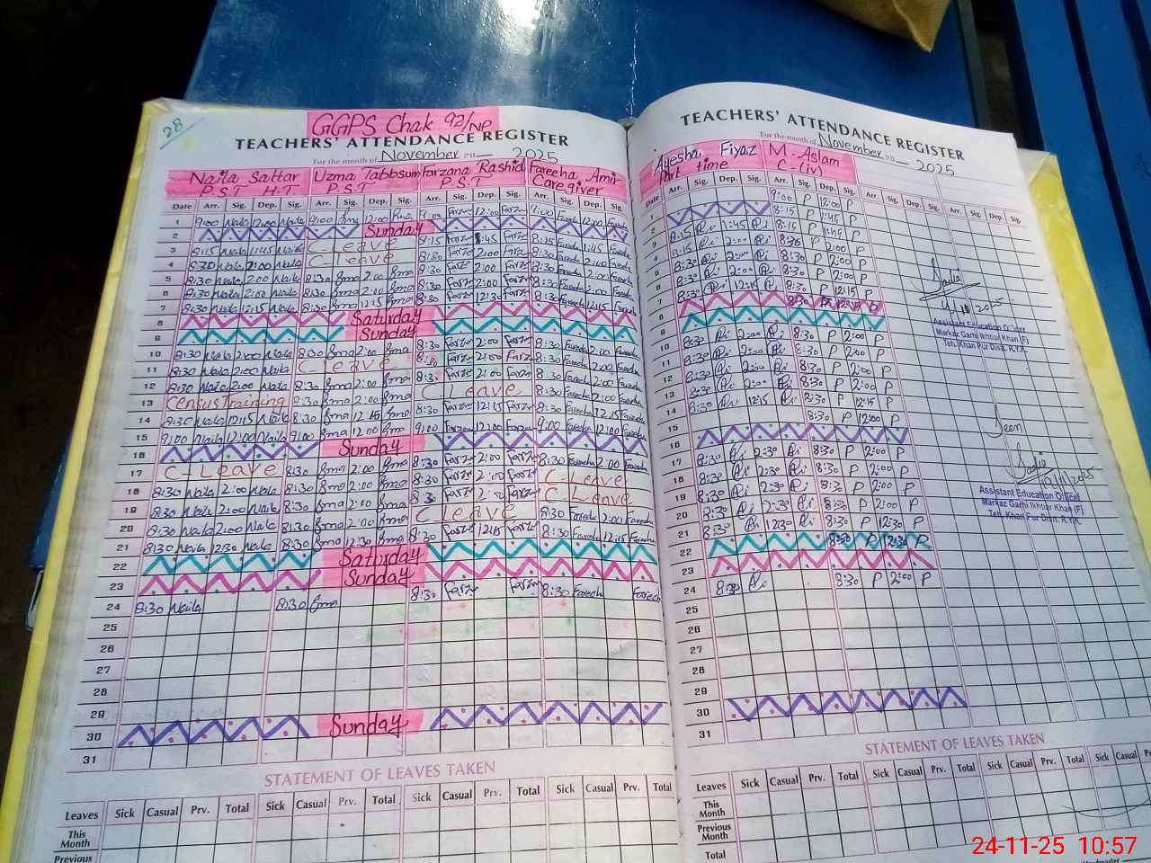 | Leave | Duty | Absent | Maternity | Medical | Ex- Pak |