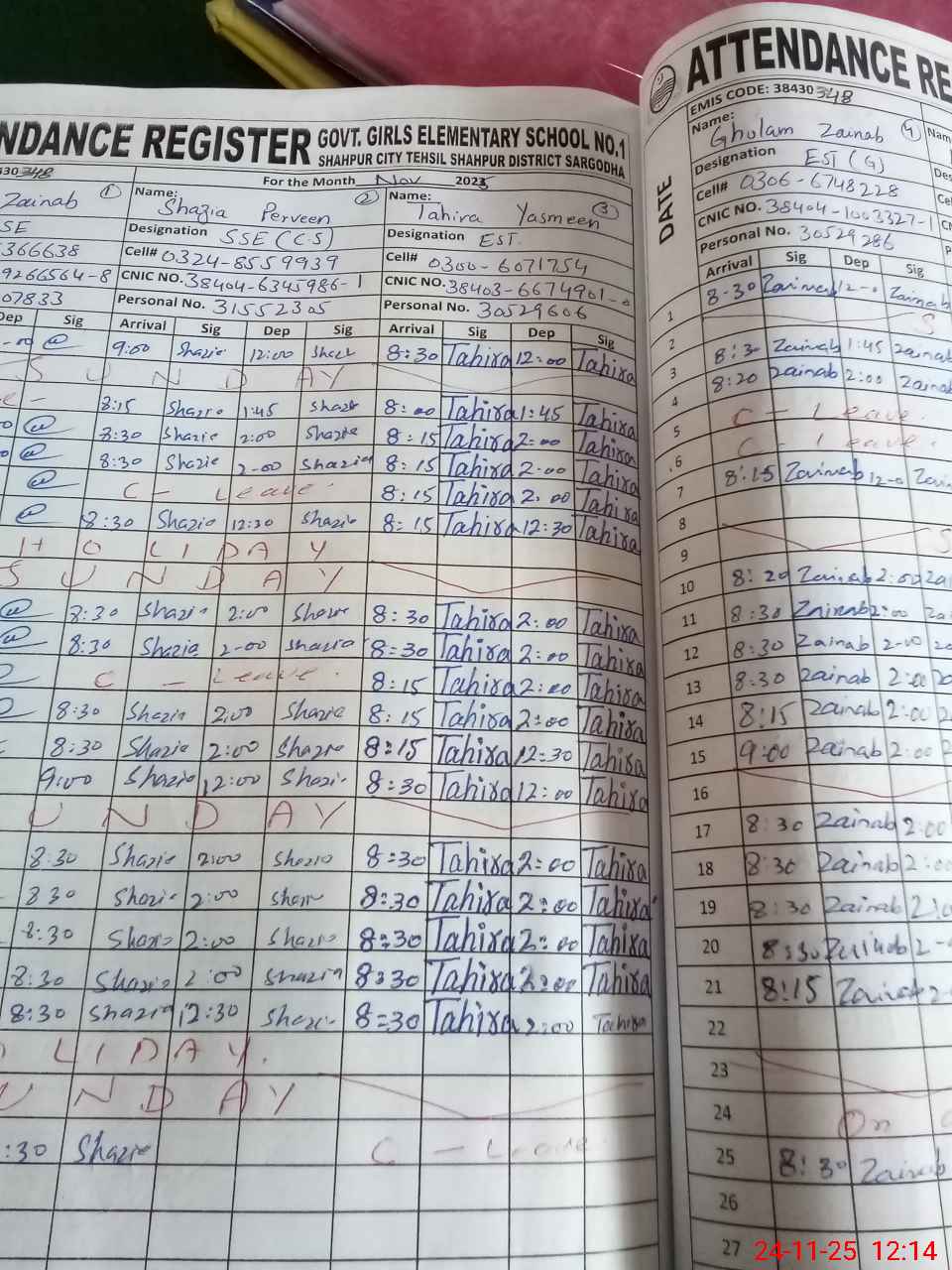 | CNIC | Full Name | Designation | R/C | Absence During Last Calender Month |
