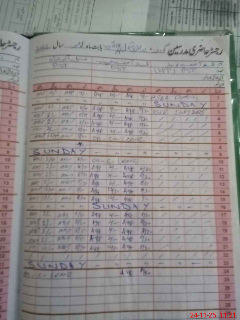 | CNIC | Full Name | Designation | R/C | Absence During Last Calender Month |