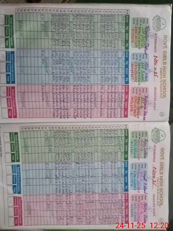 | Remarks (Use Separate Page if Required): During visit found 1- Teacher Sumera Farooq was not present in school and no sanctioned documents available submitted. | |||||