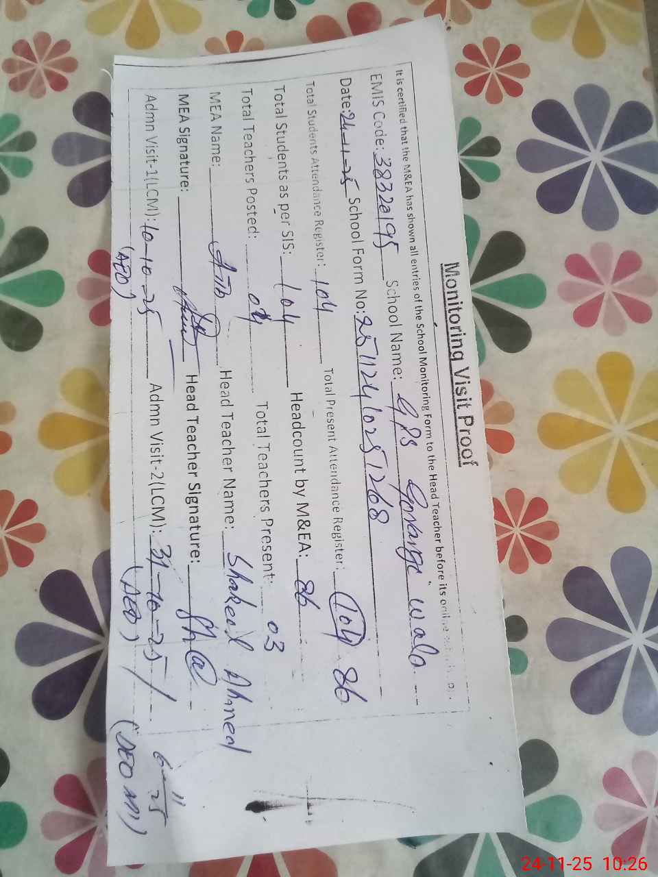 | EMIS Code: 38320195 | Name of School: GPS GORANGI WALA | |||