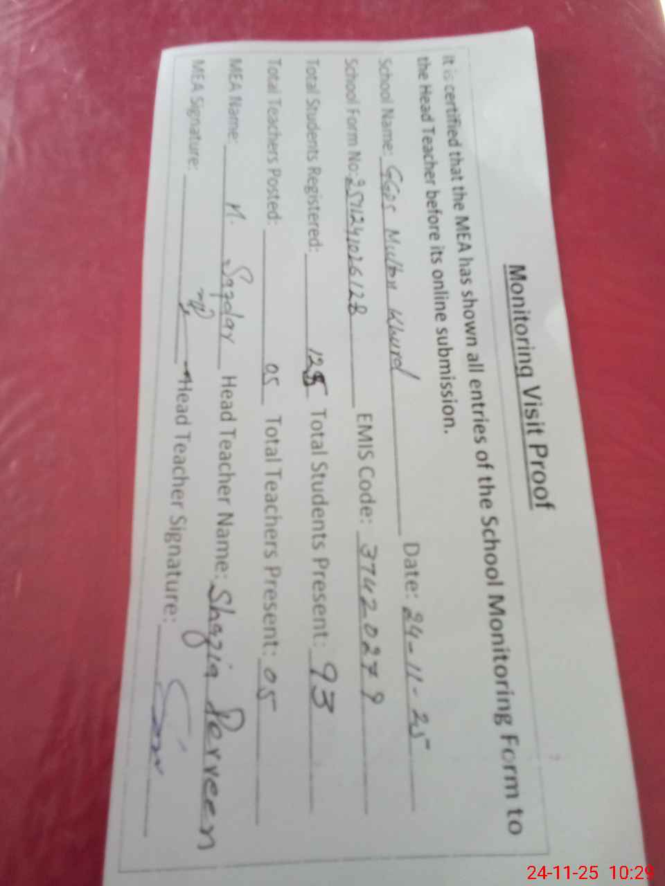 | EMIS Code: 37420279 | Name of School: GGPS MULTAN KHURD | |||