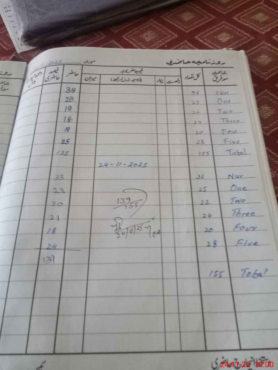 | Total Students Present | 0 | 0 | 23 | 20 | 21 | 18 | 24 | 139 | ||||||||