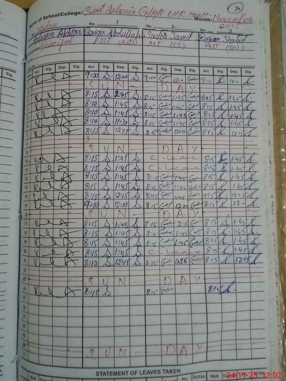 | CNIC | Full Name | Designation | R/C | Absence During Last Calender Month |