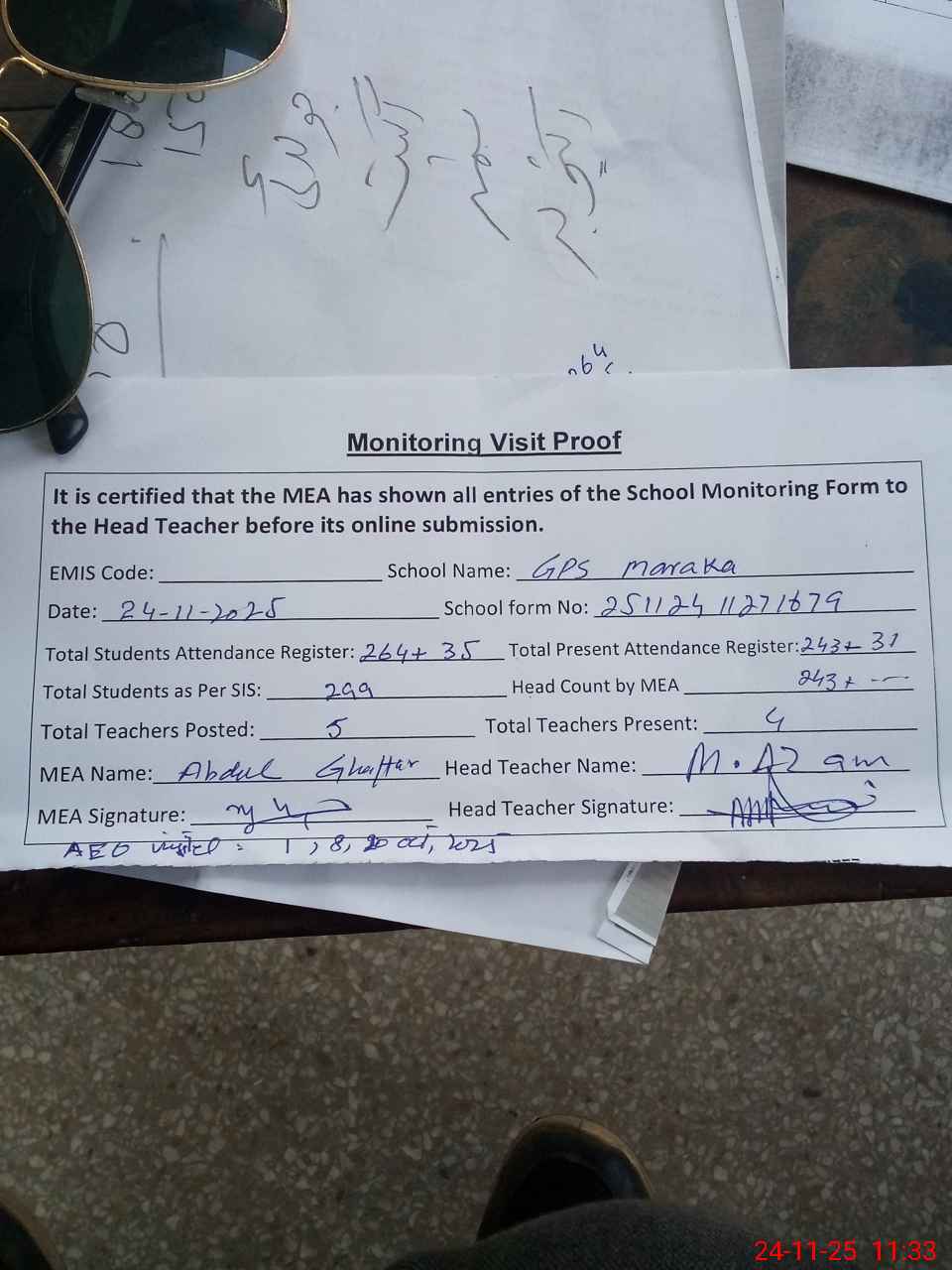| EMIS Code: 35220236 | Name of School: GPS MARAKA MULTAN ROAD | |||