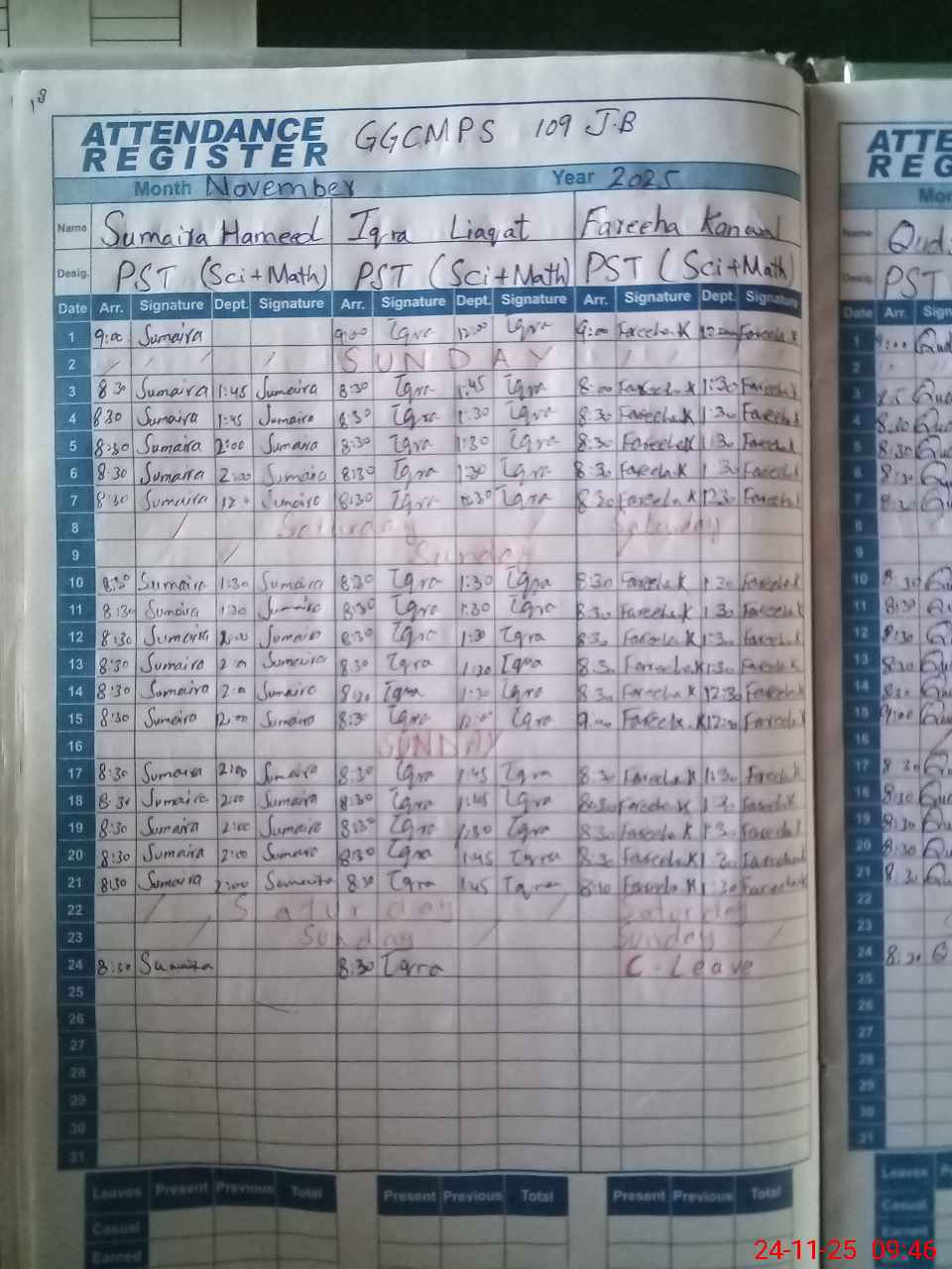 | 31**** | Fa**** Ka**** | ESE Science/Maths | Regular | 0 | 0 | 0 | 0 | 0 | 0 | 0 | 0 | 0 | Casual |