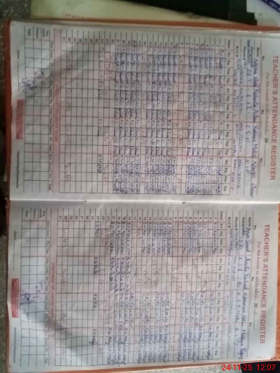 | Remarks (Use Separate Page if Required): all the register updated now due to leave of school head | |||||