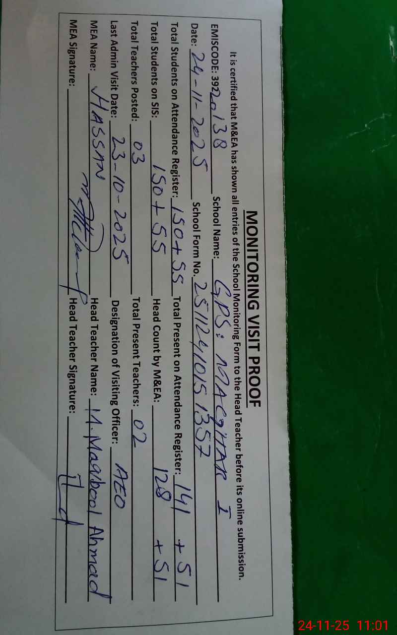 | EMIS Code: 39220138 | Name of School: GPS MAGHER NO. 1 | |||