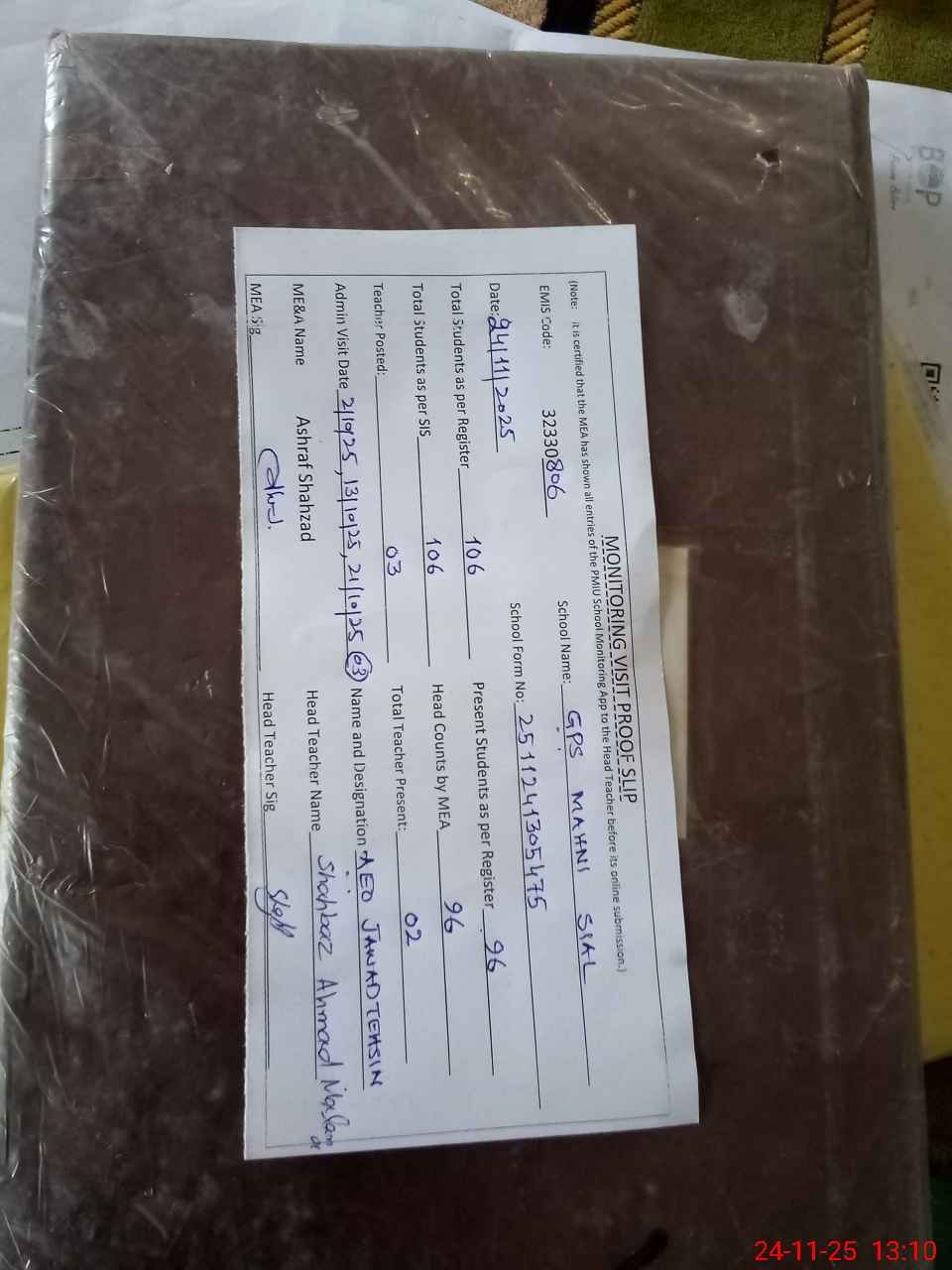 | EMIS Code: 32330806 | Name of School: GPS MAHNI SIAL | |||