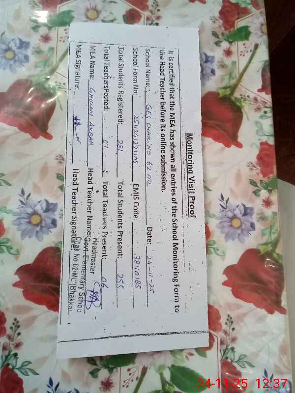 | EMIS Code: 38110185 | Name of School: GES CHAK NO 62 ML | |||