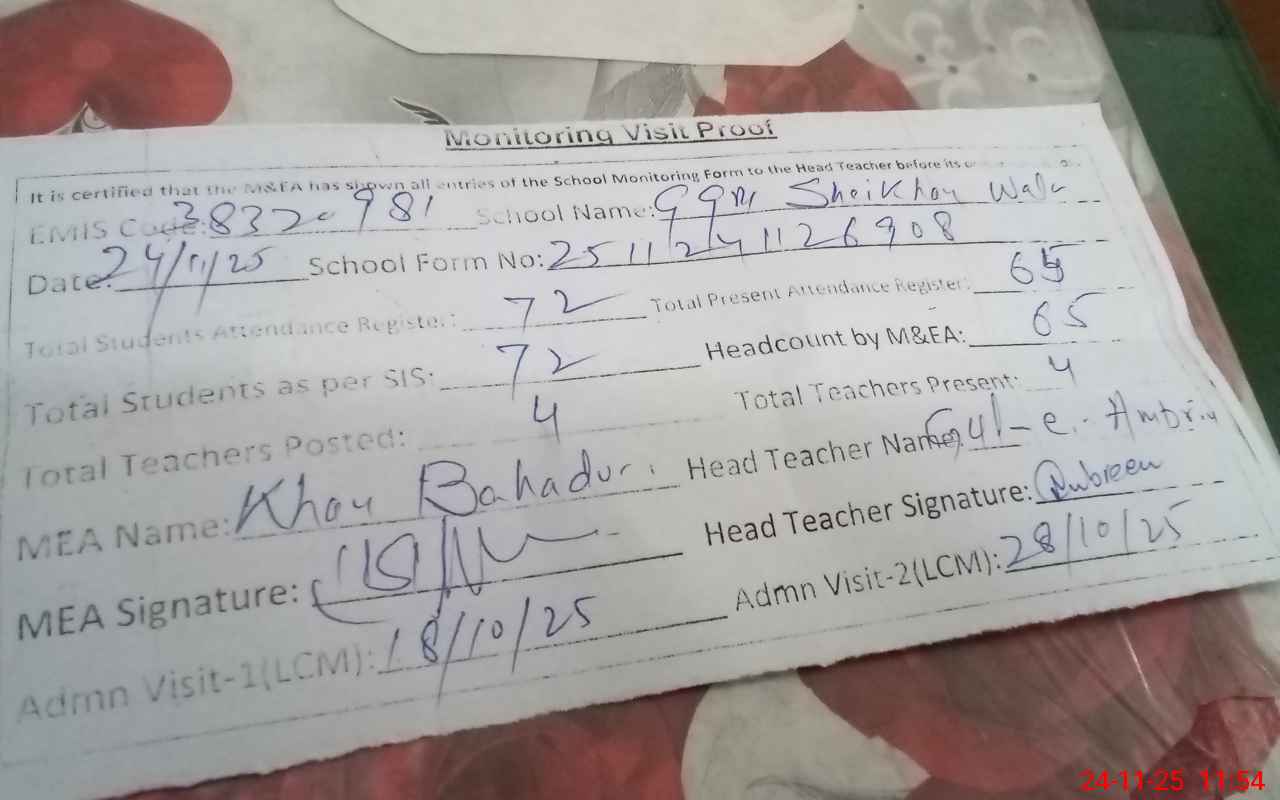 | EMIS Code: 38320981 | Name of School: GGPS SHEIKHAN WALA | |||