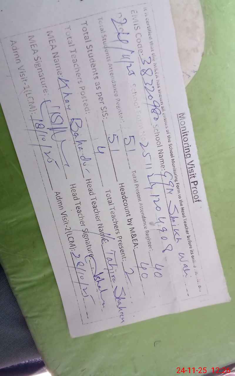 | EMIS Code: 38320980 | Name of School: GGPS SHEIKH WALI | |||