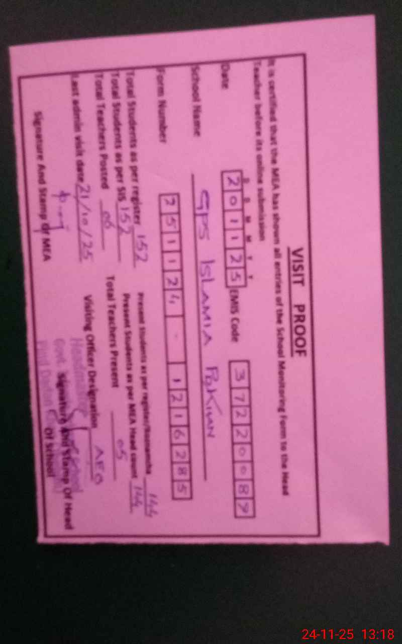 | EMIS Code: 37220089 | Name of School: GPS ISLAMIA P.D. KHAN | |||