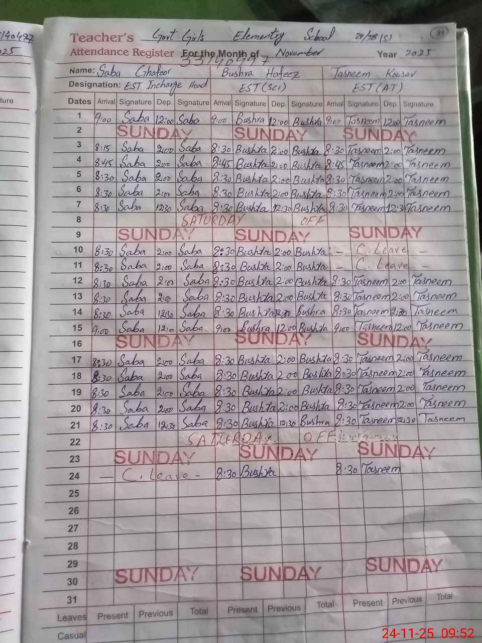 | 33**** | Sa**** Gh**** | Regular | 2 | 0 | 0 | 0 | 0 | 0 | 0 | 0 | 2 | Casual | |