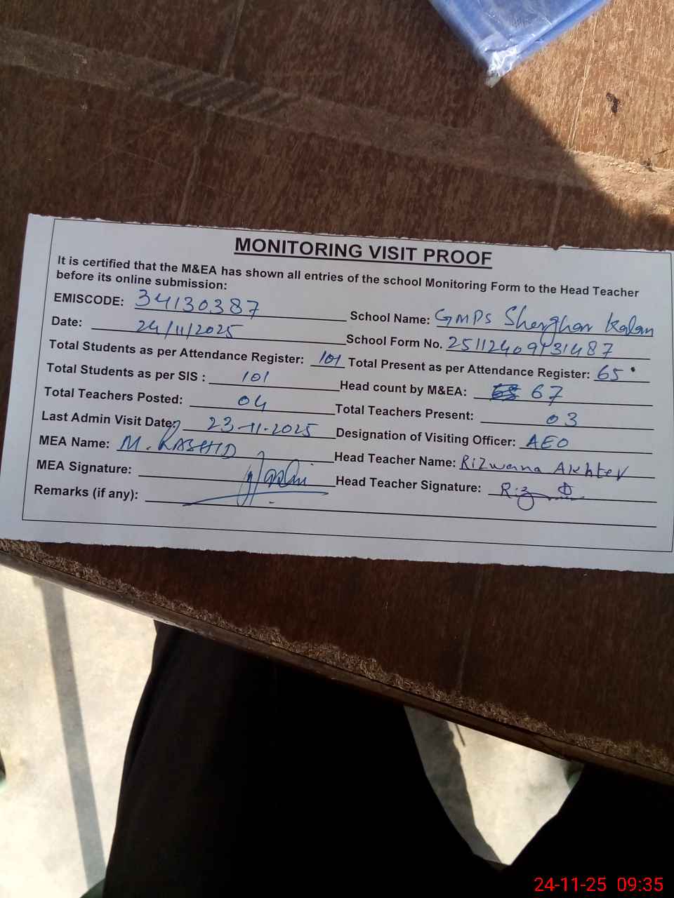 | EMIS Code: 34130387 | Name of School: GMPS SHERGHAR KALAN | |||